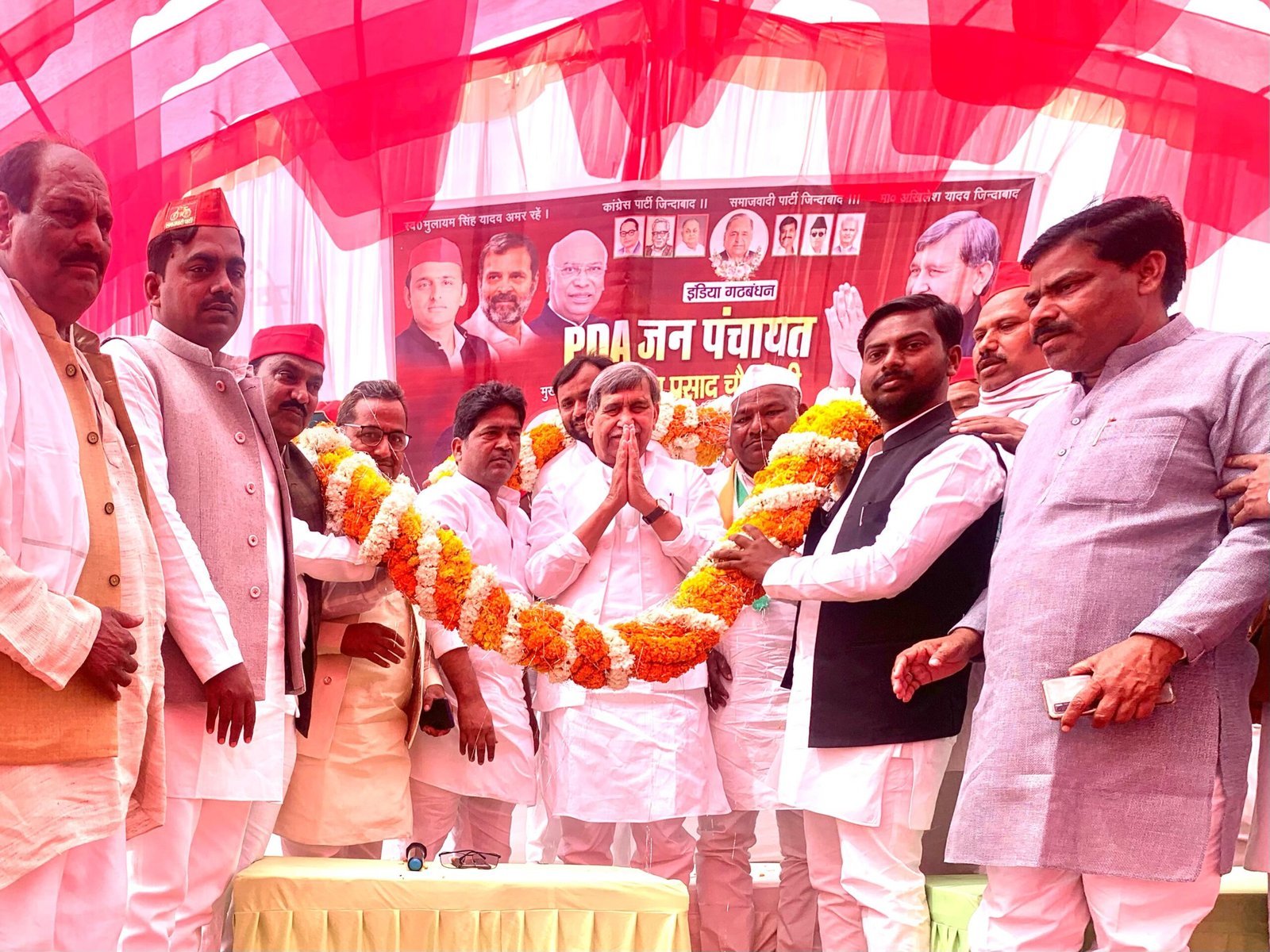 सपा जिलाध्यक्ष एवं सदर विधायक महेन्द्रनाथ यादव ने कहा कि केन्द्र और उत्तर प्रदेश की सरकार नेताओं, सामाजिक कार्यकर्ताओं और सत्ता, व्यवस्था परिवर्तन चाहने वालों को डराकर सत्ता में बने रहना चाहती है, किन्तु मतदाता इस बार साम्प्रदायिक ताकतों को मुहतोड़ जबाब देंगे। नौजवान, किसान, व्यापारी सहित दलित, अल्पंसख्यक अगड़े, पिछड़े समाज के लोग परिवर्तन का मन बना चुके है। कहा कि भाजपा की सरकार किसानों पर गोलियां चलाकर, नौजवानों के नौकरियों का हक छीनकर, सेना में अग्निवीर योजना लाकर लोकतांत्रिक अधिकारों को छीन लेना चाहती है, यह सरकार पूंजीपतियों की हितैषी है। आवाहन किया कि किसान, नौजवान, पिछड़े, दलित, अल्पसंख्यक के साथ ही सर्व समाज के लोग एकजुट होकर भाजपा के सत्ता के अहंकार को परास्त करे। पीडीए जन पंचायक की अध्यक्षता करते हुये सपा महादेवा विधानसभा क्षेत्र अध्यक्ष राजेन्द्र चौधरी ने कहा कि क्षेत्र के मतदाता इस बार कोई भूल नहीं करेंगे और सपा प्रत्याशी रेकार्ड मतों से जीत दर्ज करेंगे।