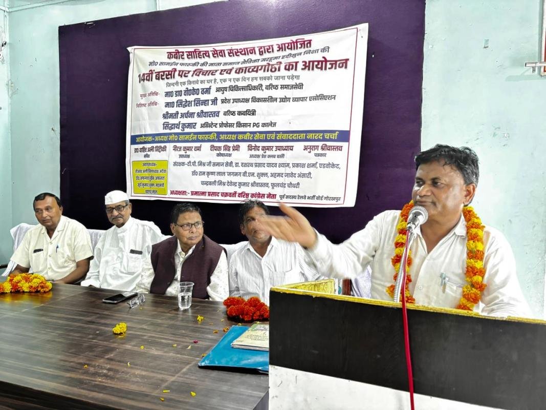 बस्ती । कबीर साहित्य सेवा संस्थान द्वारा शनिवार को जिलाध्यक्ष मोहम्मद सामईन फारुकी के संयोजन में मरहुम हदीसुन निशां के चौदहवीं पुण्य तिथि पर प्रेस क्लब सभागार में श्रद्धांजलि सभा का आयोजन किया गया। वरिष्ठ साहित्यकार आयुष चिकित्साधिकारी डा वी. के. वर्मा ने कहा कि संसार में माता-पिता का स्थान सर्वोच्च है। मां की स्मृतियों को ताजा रखना परिजनों, पुत्रों का दायित्व है। सामईन फारुकी इसे बखूबी निभा रहे हैं।