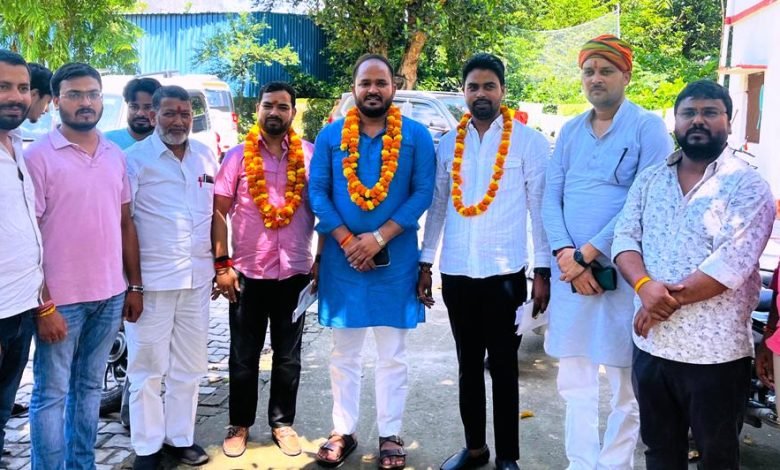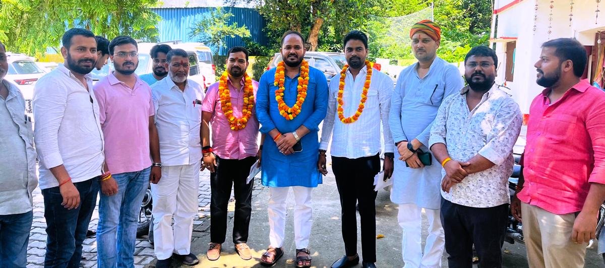 एक राष्ट्र एक चुनाव के पदाधिकारियों का फूल मालाओं के साथ स्वागत