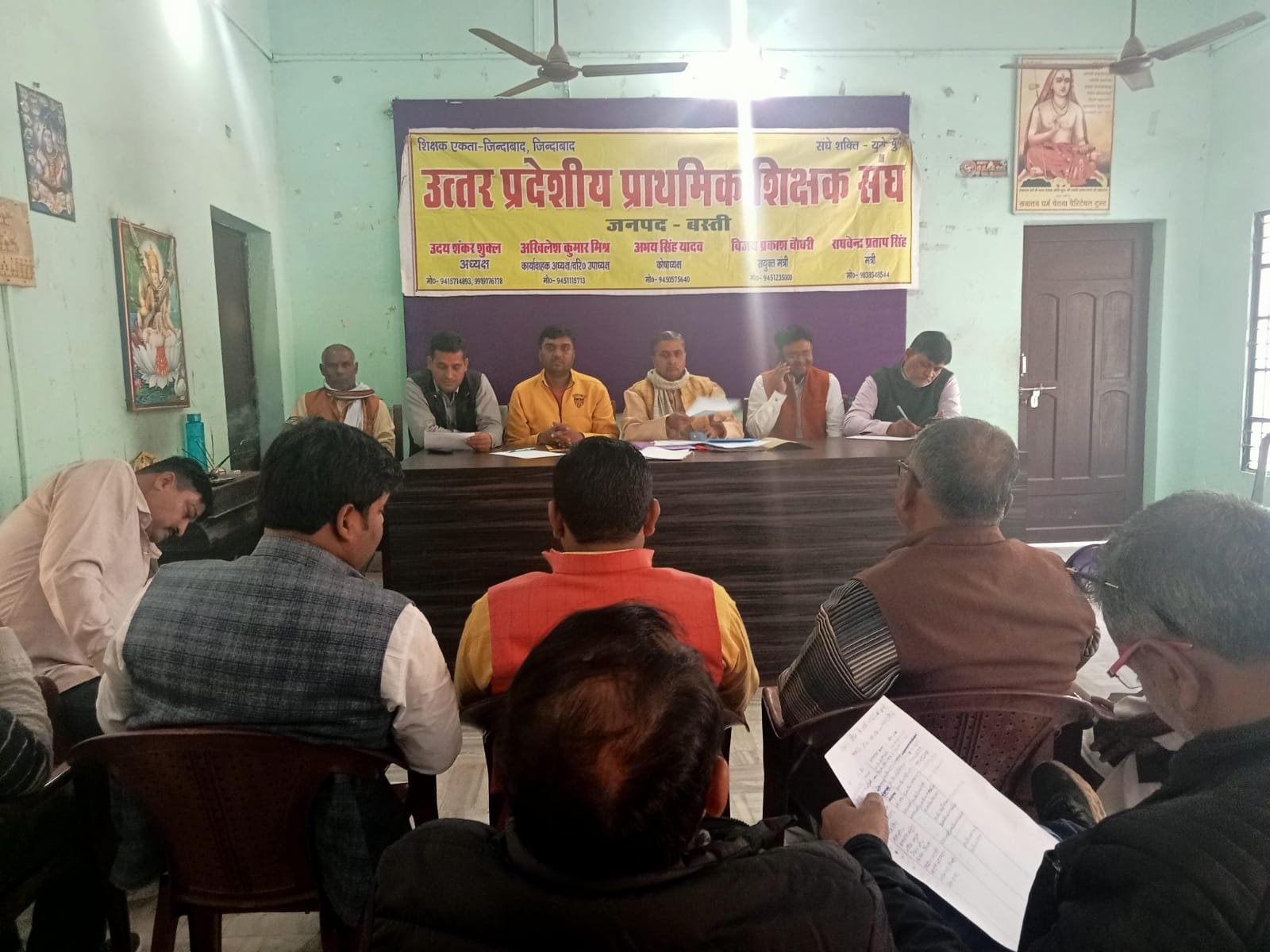 बस्ती । प्रेस क्लब बस्ती में आज उत्तरप्रदेशीय प्राथमिक शिक्षक संघ द्वारा निर्धारितजनपद बस्ती में निर्वाचित पदाधिकारियो को कार्यदायित्व बोध हेतु परिचर्चा में जिलाध्यक्ष उदयशंकर शुक्ल जी की अध्यक्षता में बैठक सम्पन्न हुई जिसमे मुख्य मुद्दा पदोन्नति हेतु अपेक्षित वरिष्ठता सूची अविलम्ब जारी करवाने हेतु संगठन की रणनीति तय हुई