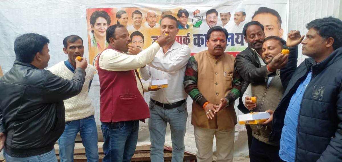 बस्ती:हिमांचल में मिली विजय से कांग्रेस नेताओं में खुशी की लहर मिठाई खिलाकर एक दूसरे को दी बधाईयां
